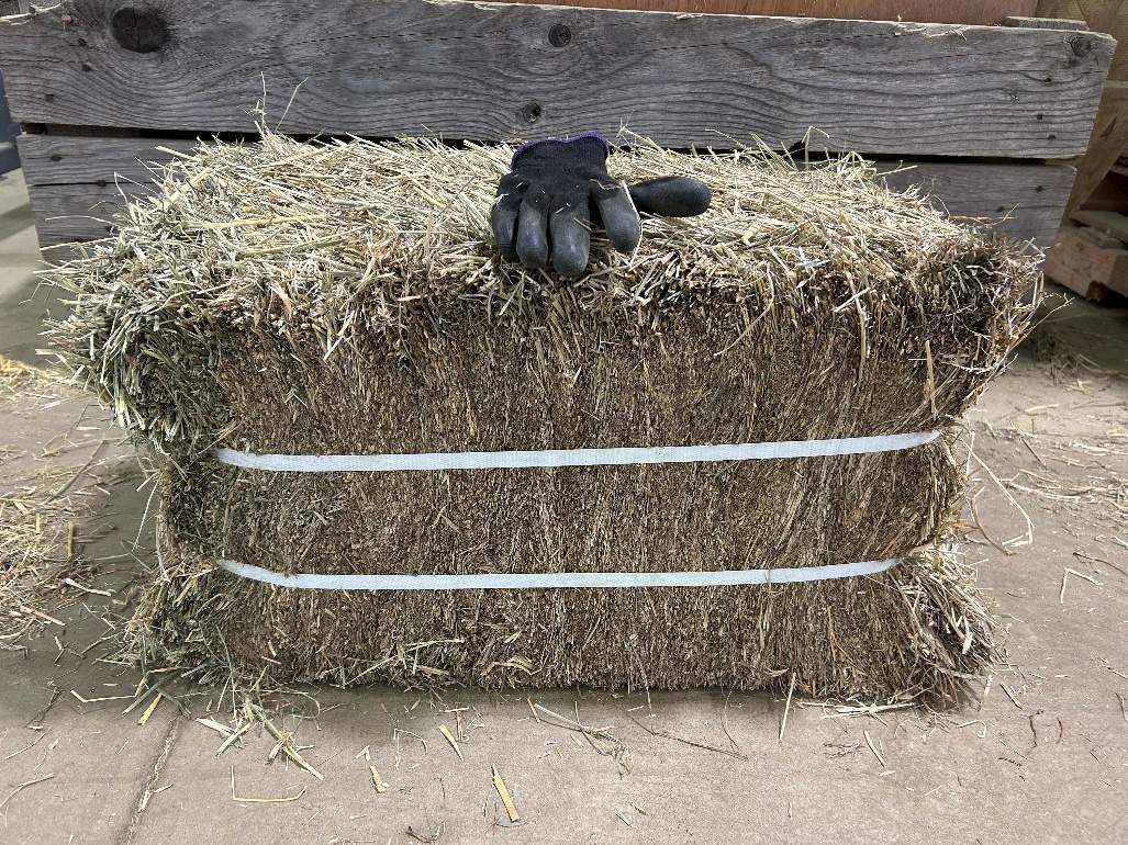 Ce format de balles compactées est moins populaire parce que ce sont de très petites balles qui font en sorte d’avoir un plus grand nombre de balles à bouger pour avoir la même quantité de foin. De la même façon que les balles de 40 livres, ces balles sont mises sur des palettes pour le transport et l’entreposage.