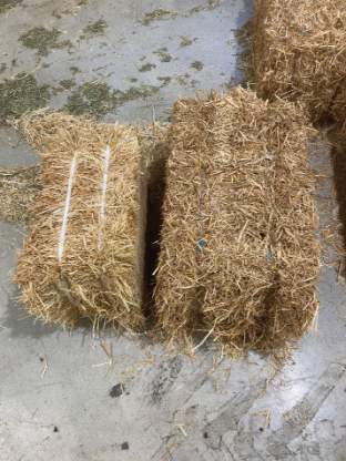 Nous avons un système qui nous permet de prendre les grosses balles, de défaire les galettes et de represser le foin en petites balles standard. Étant donné que les galettes de la grosse balle sont défaites avant d’être represser, le foin est très court et les galettes ne se tiennent pas, ce qui rend la manutention plus difficile. De façon générale, ce procédé n’est pas très apprécié de nos clients c’est pourquoi nous nous sommes équipés du compacteur pour éviter les inconvénients du foin repressé. Par contre, nous pouvons faire des petites balles de paille qui sont très populaire!